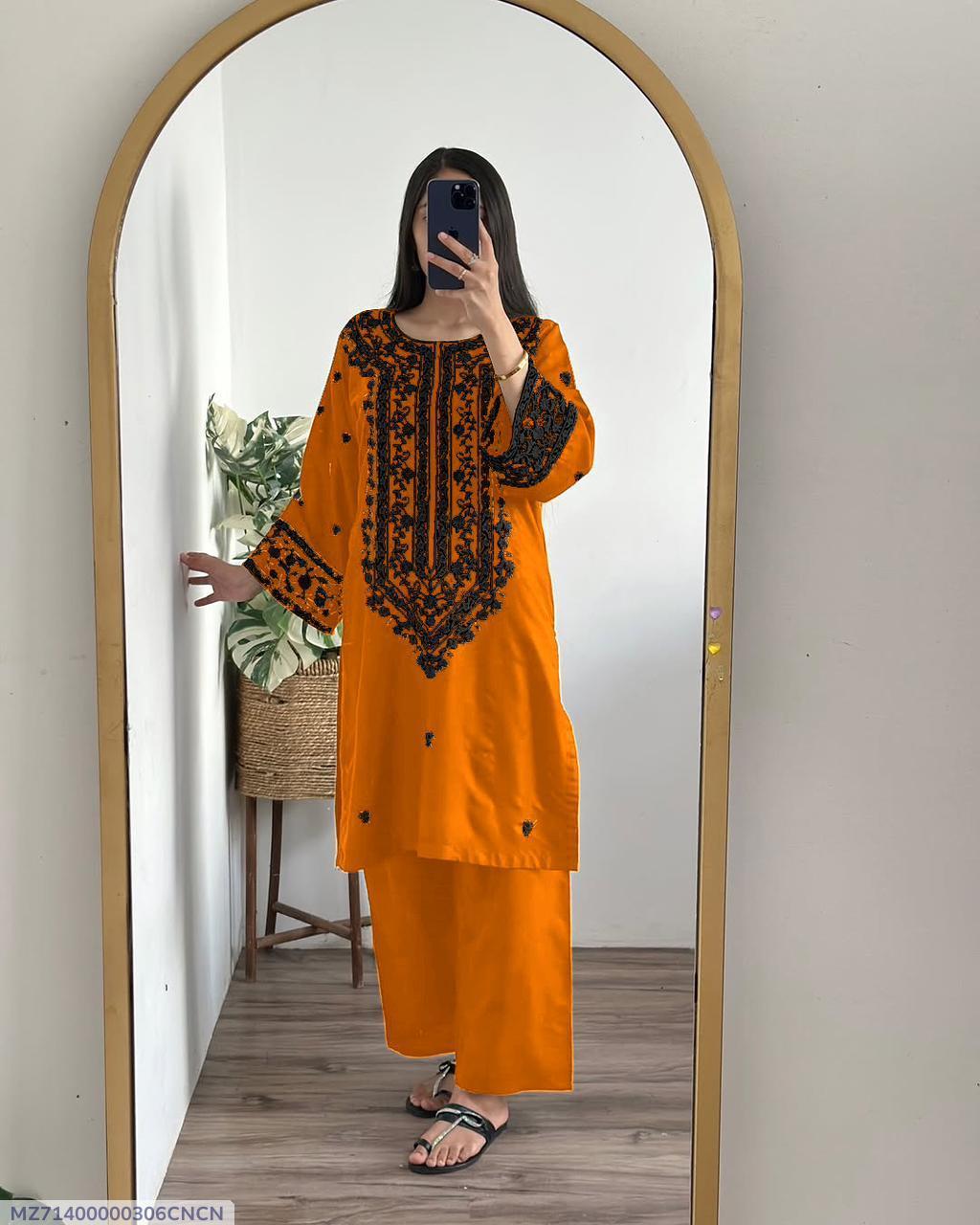 2 Pcs Women's Stitched Cotton Embroidered Shirt And Trouser