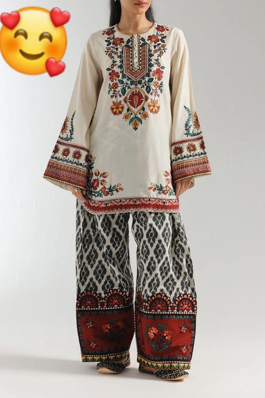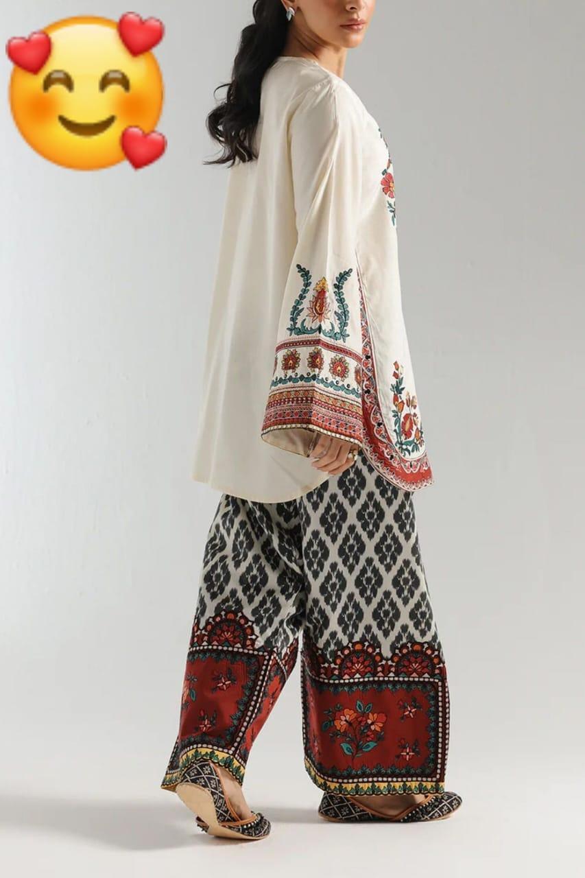 Digital Printed Swiss Silk 2Pcs Suit – Off White