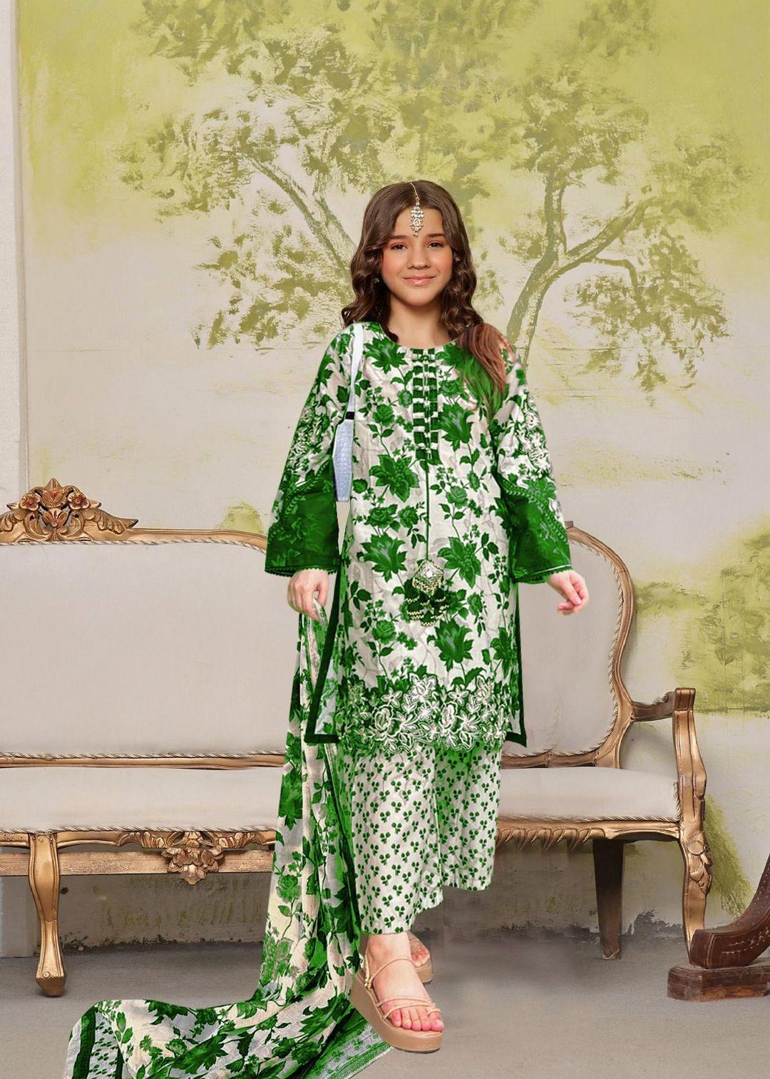 Girls 3 Pcs Green Independence Day Swiss Lawn Printed Suit