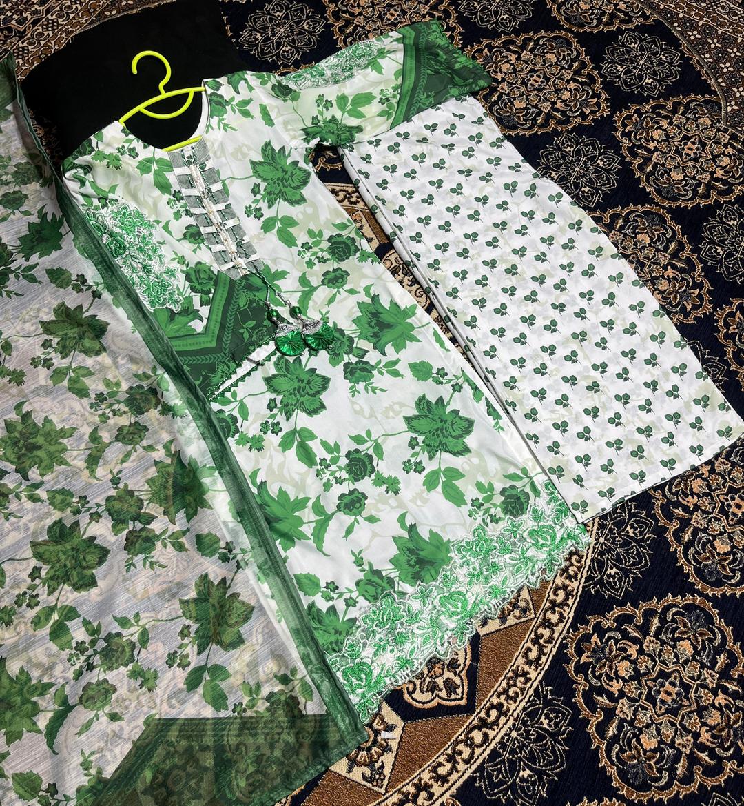 3 Pcs Girl's Lawn Printed Stitched Suit