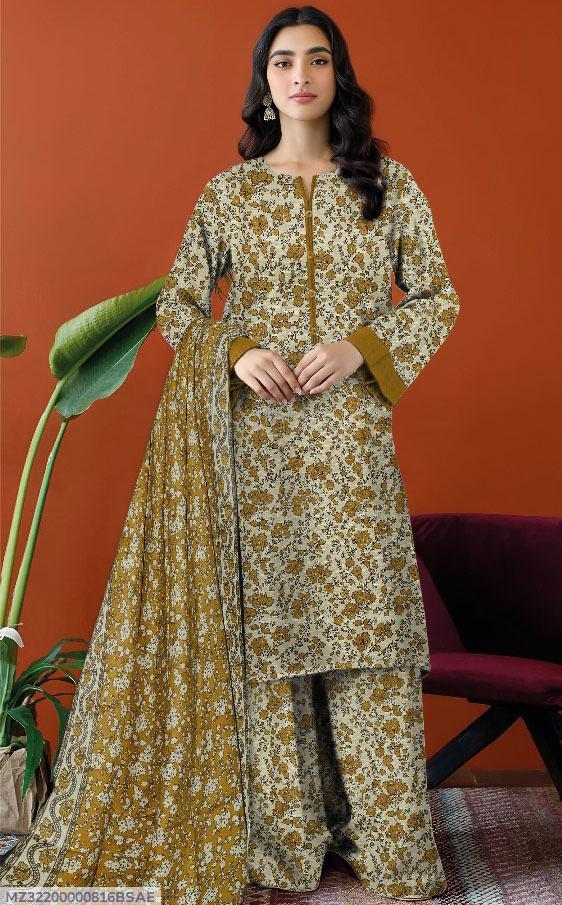 3 Pcs Women's Unstitched Khaddar Printed Suit